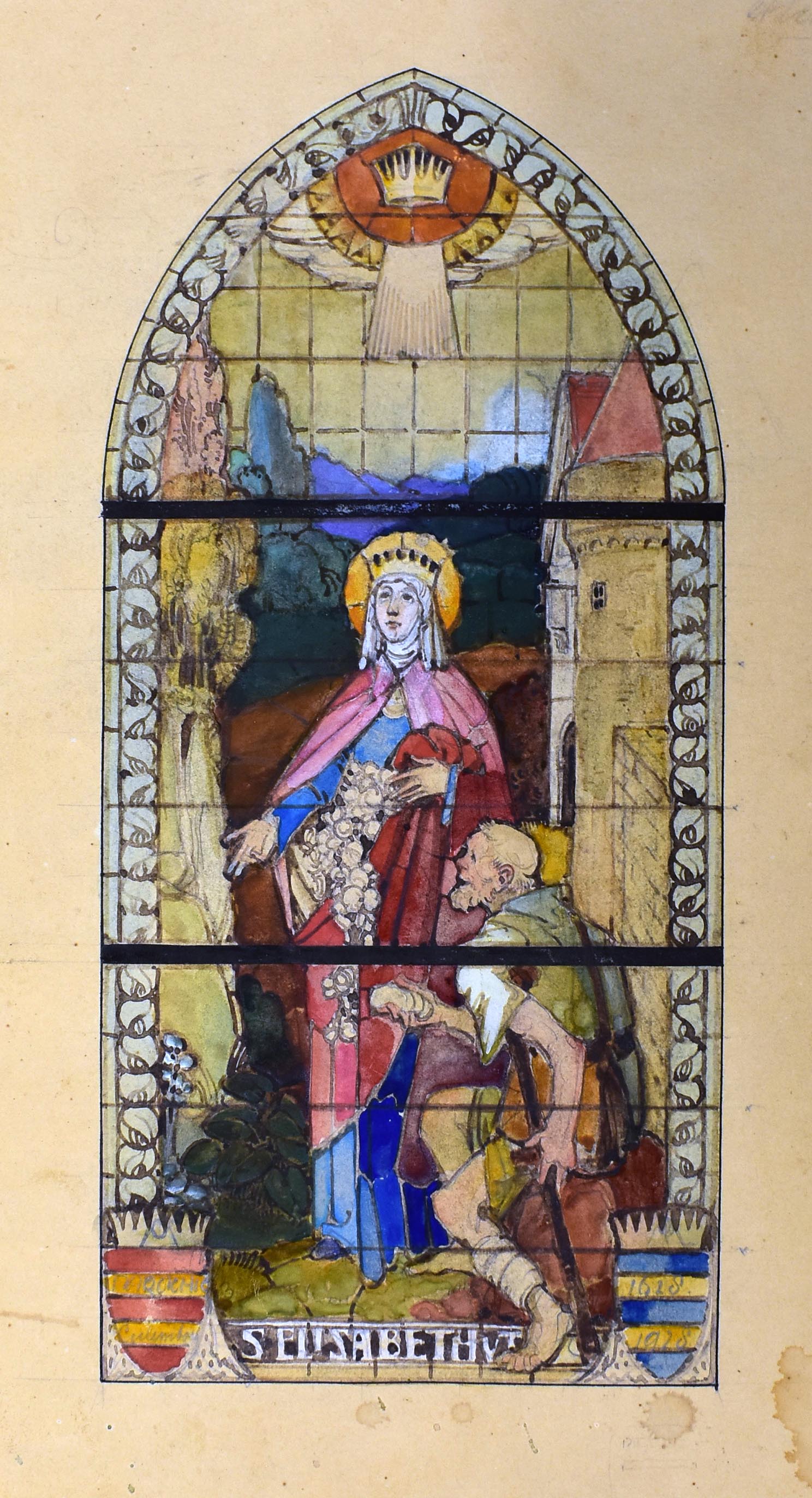 Ontwerp glasraam met H. Elisabeth van Thuringen (Culemborg, St. Barbarakerk), bevestigd aan RMCC te9.62