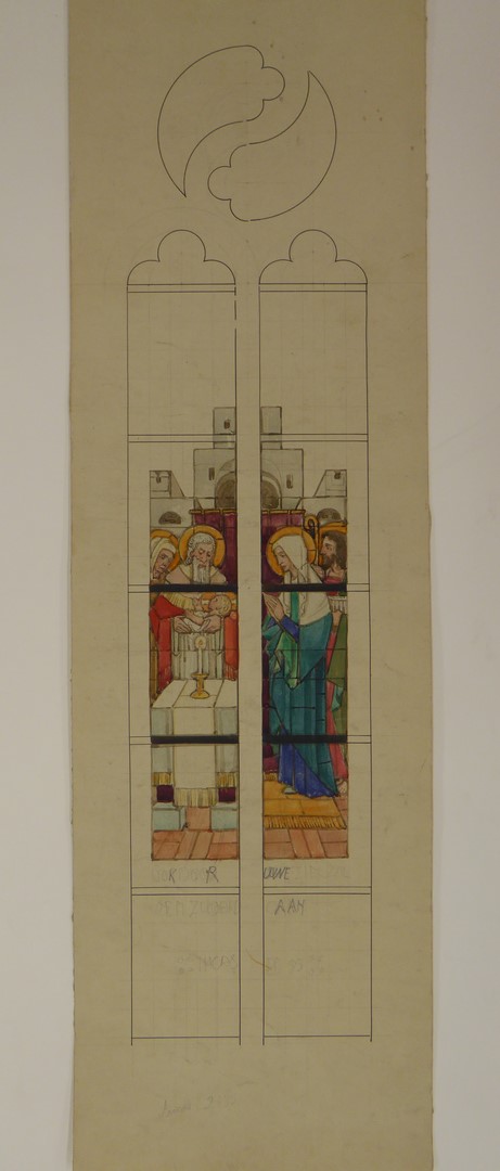 Ontwerp glasraam met de opdracht in de tempel (Delden, St. Blasiuskerk)
