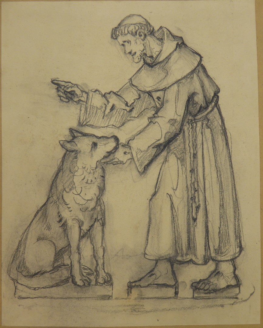 Schets van Franciscus en de wolf van Gubbio
