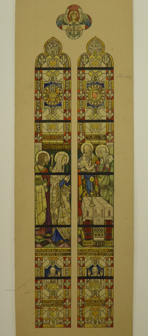 Ontwerp glasraam met de opdracht in de tempel (Groningen, St. Josephkerk)