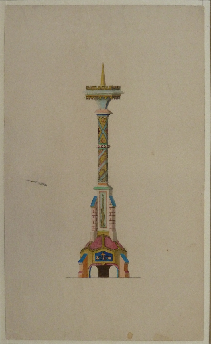 Ontwerp kandelaar in neogotische stijl