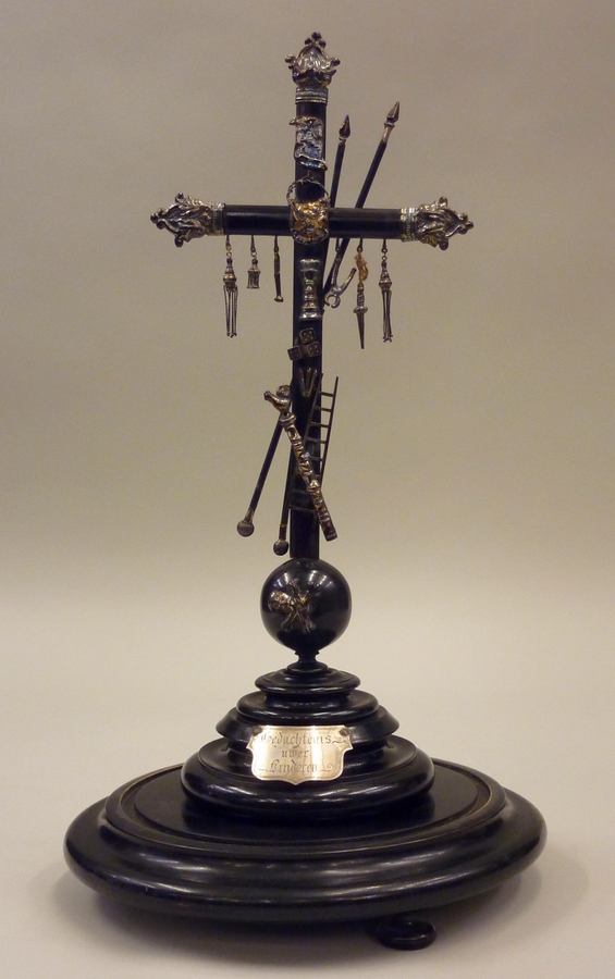 Kruis met Arma Christi onder stolp