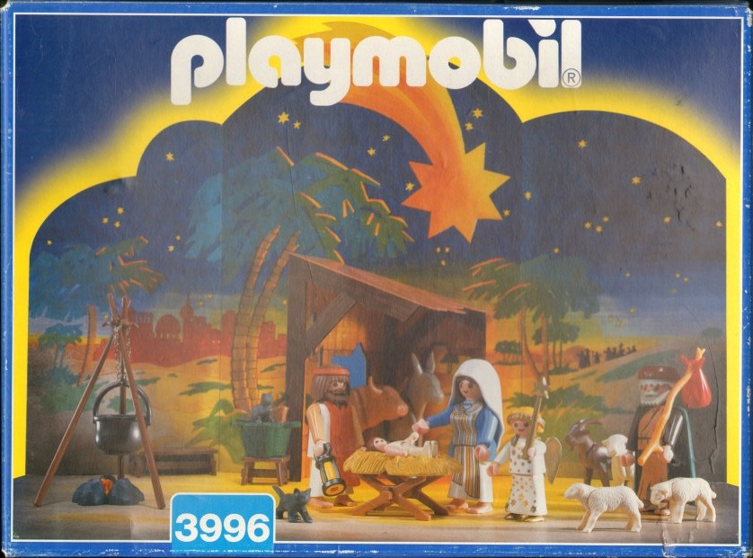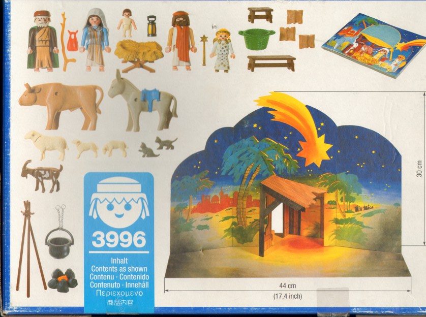 Kartonnen doos, behorend bij Playmobil kerstgroep RMCC v1013a