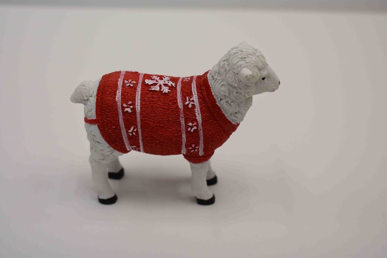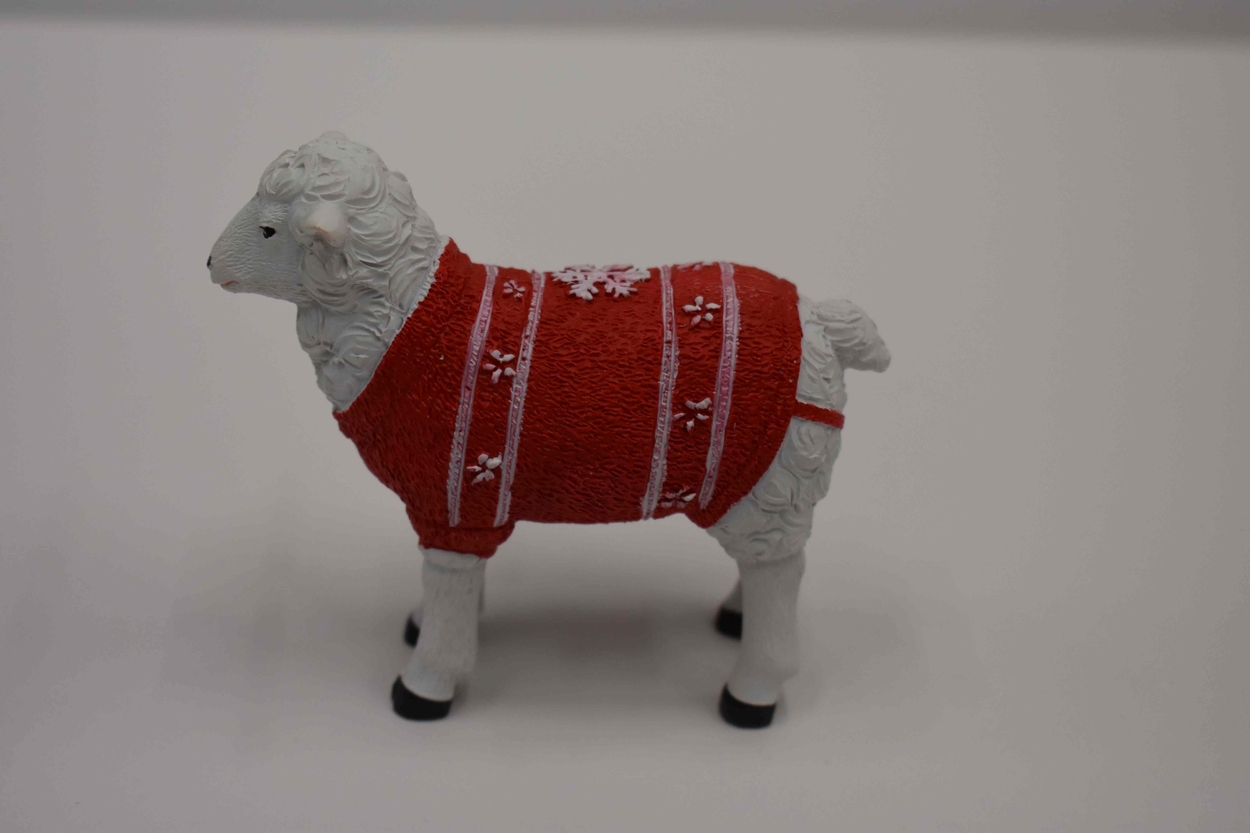 Hipster kerstgroep: schaap met rode kersttrui