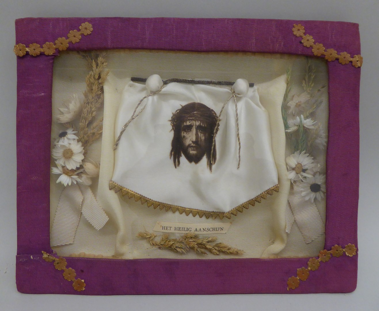Kastje met compositie van droogbloemen en doek van Veronica