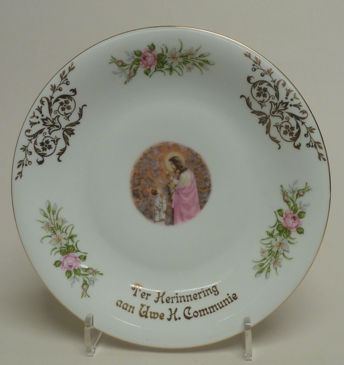 Eerste H. Communieservies: bord met Communie uitreikende Christus