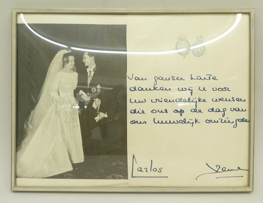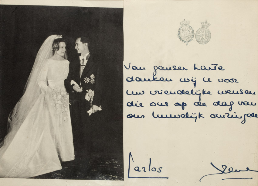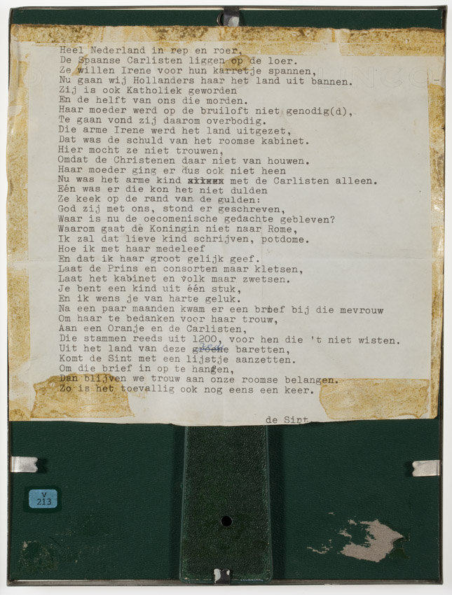 Foto bruidspaar Carel Hugo van Bourbon-Parma en Irene van Oranje, met satirisch Sinterklaasgedicht