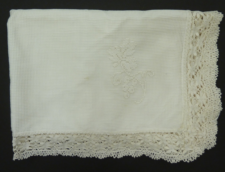 Bedieningsdoos met toebehoren: wit kleedje met "Kom Heer Jezus"