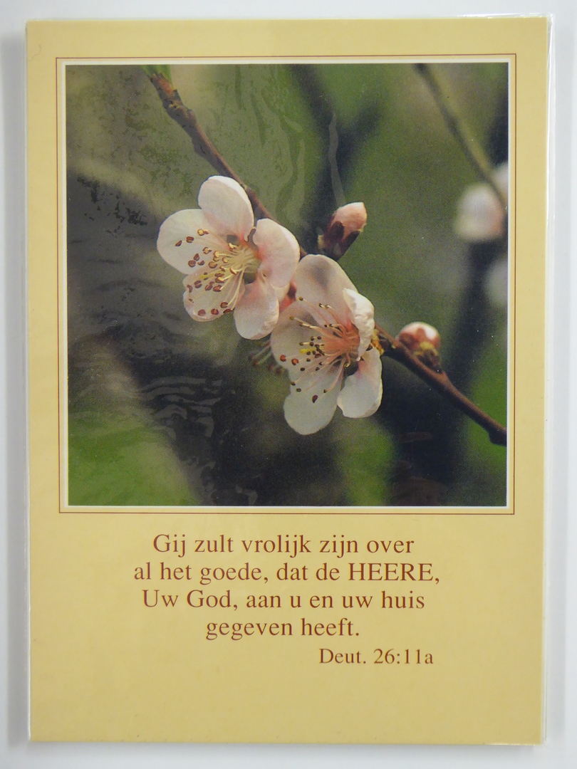 Puzzel en prentbriefkaart met bijbelteksten in de statenvertaling