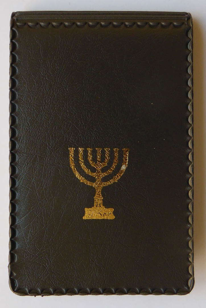 Notitieblok en telefoonklapper met Christussymbool en de Menorah