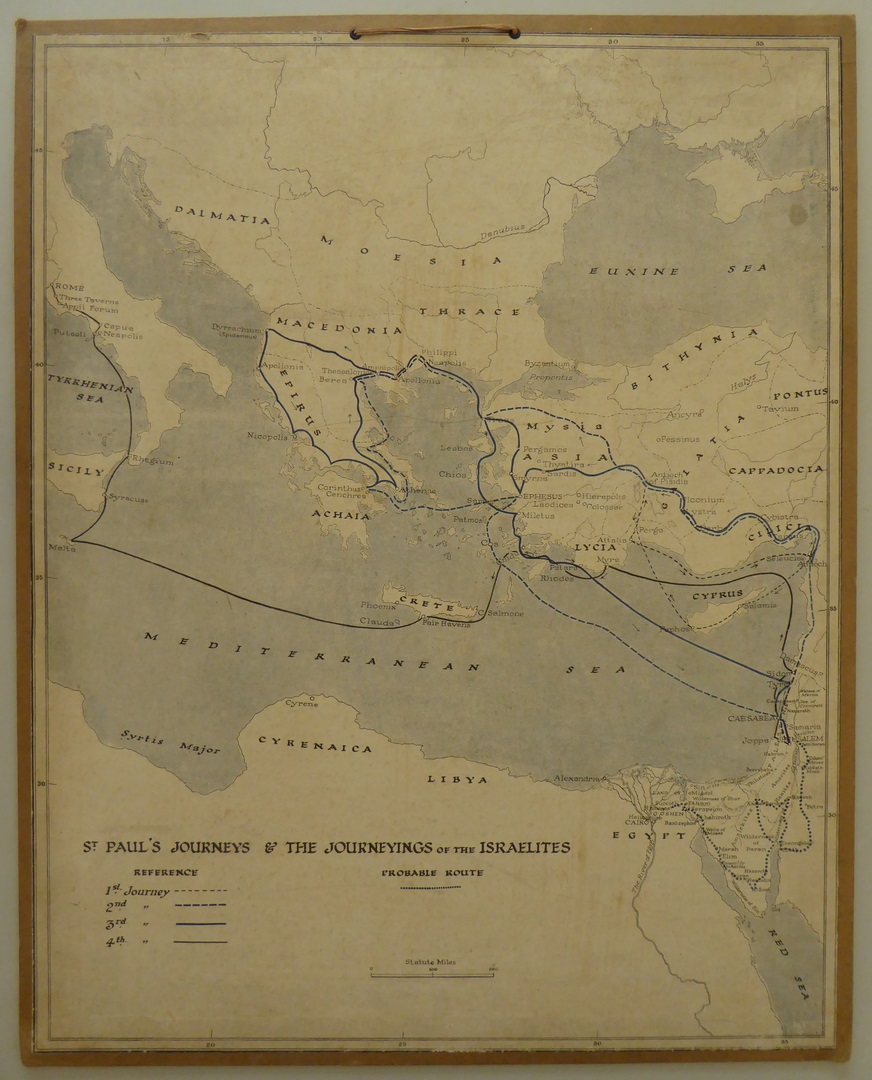 Kaart van Paulus' reizen en de reizen van de Israelieten (Engels)