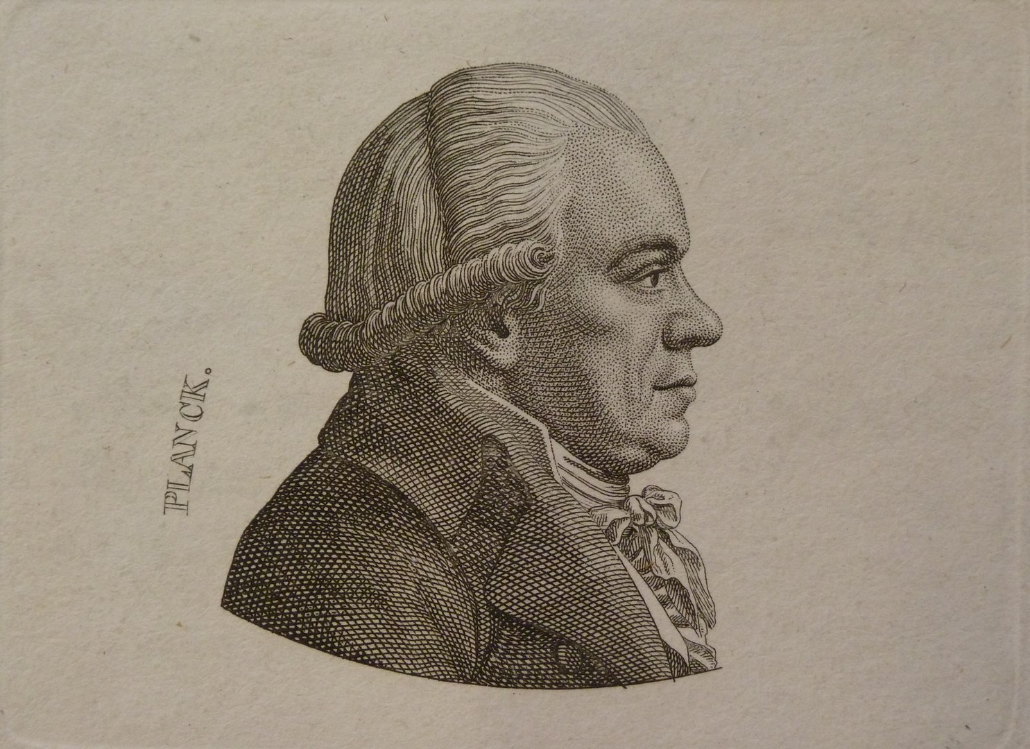 Borstbeeld en profil naar rechts. Met tekst: 'Planck'.
