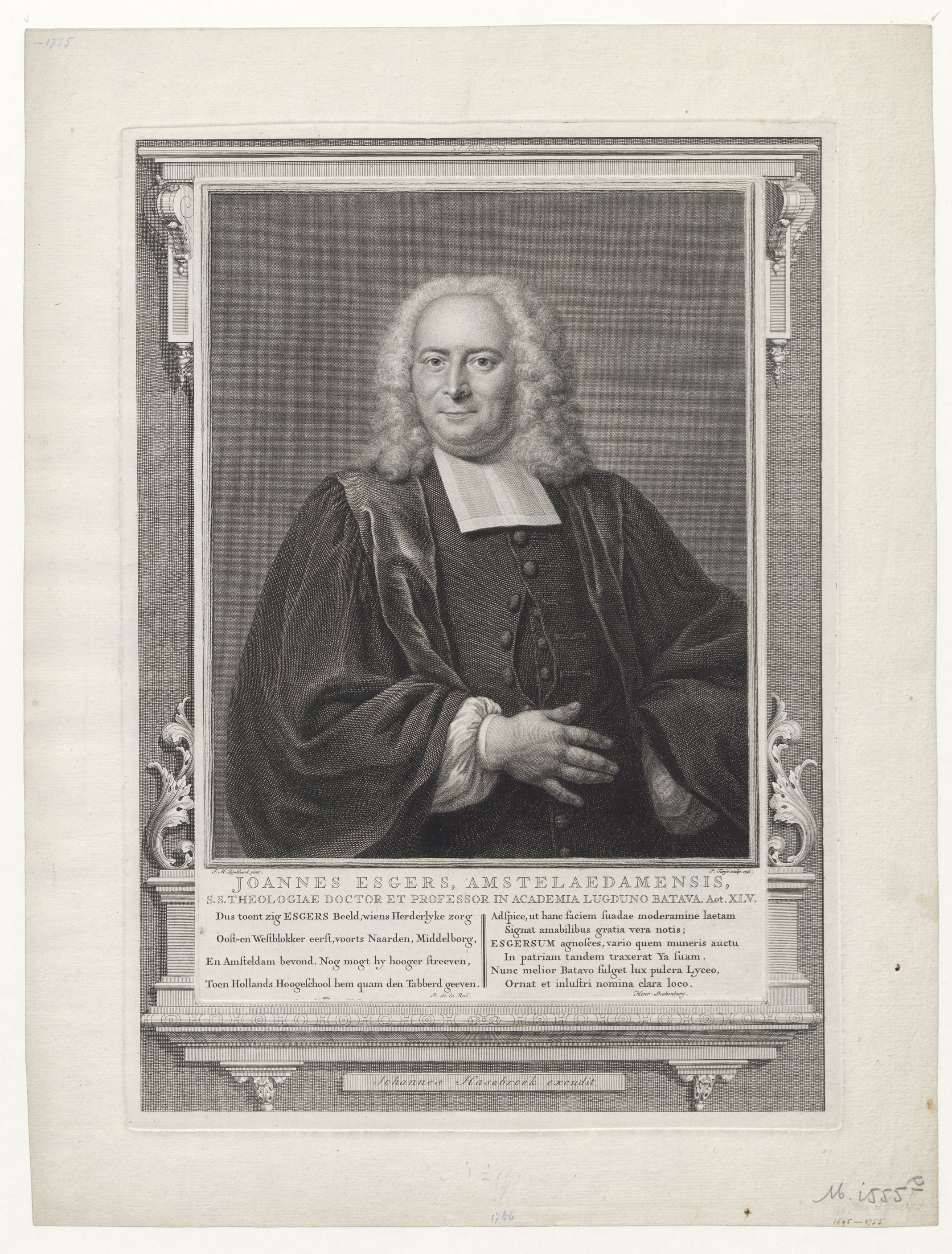 Portret van Joannes Esgers (1696-1755), predikant te Blokker, Naarden, Middelburg, Amsterdam en hoogleraar te Leiden