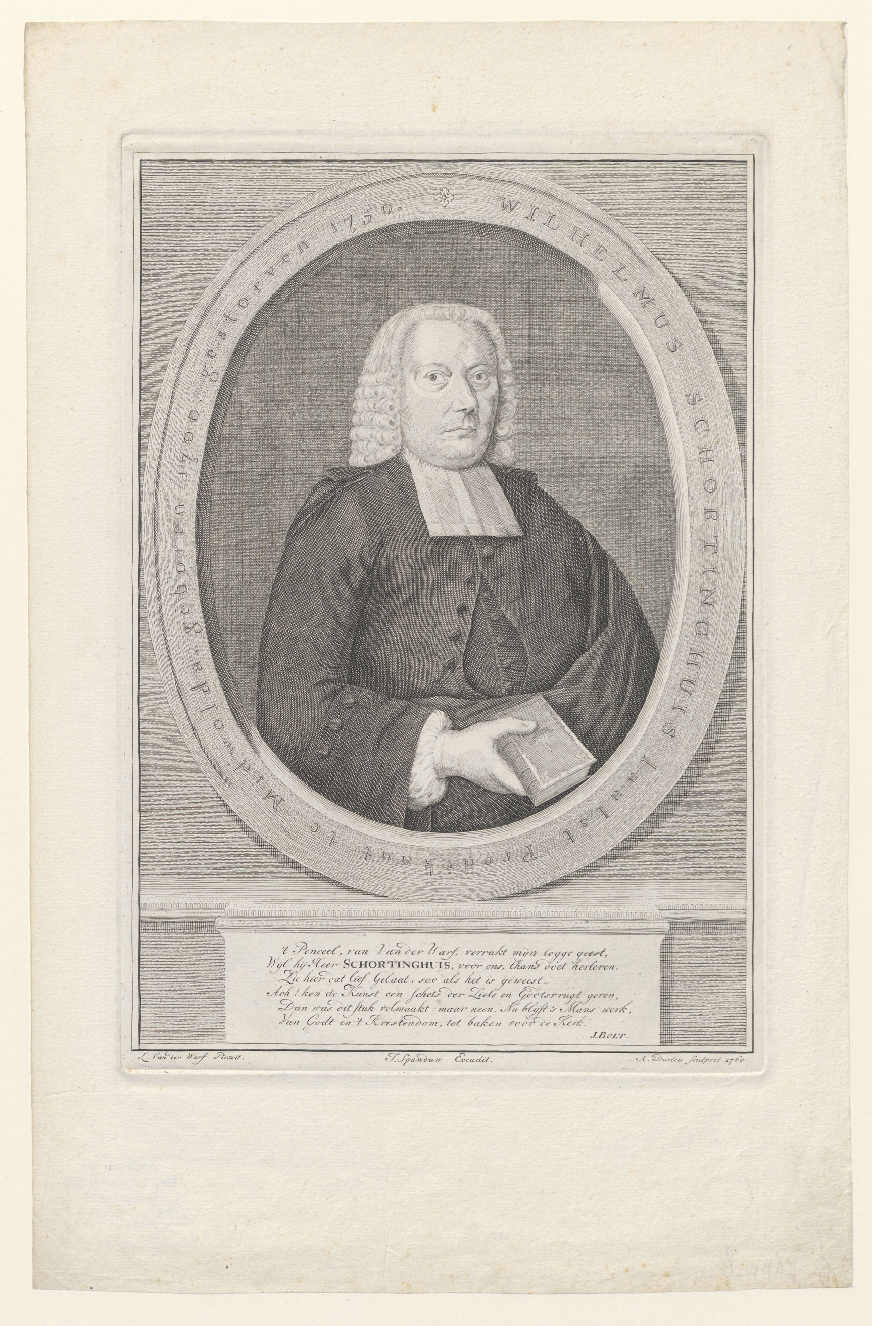 Portret van Wilhelmus Schortinghuis (1700-1750), hervormd predikant te Midwolde
