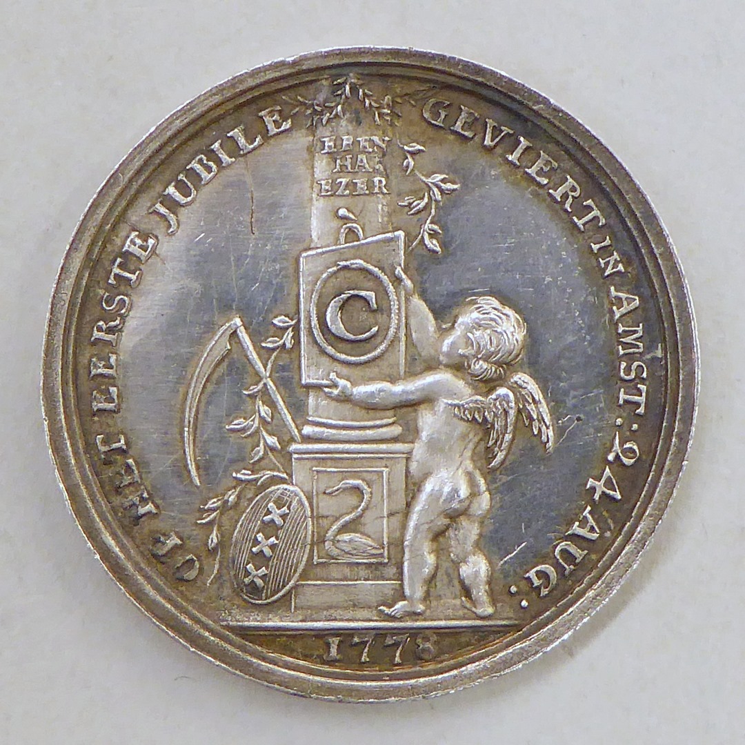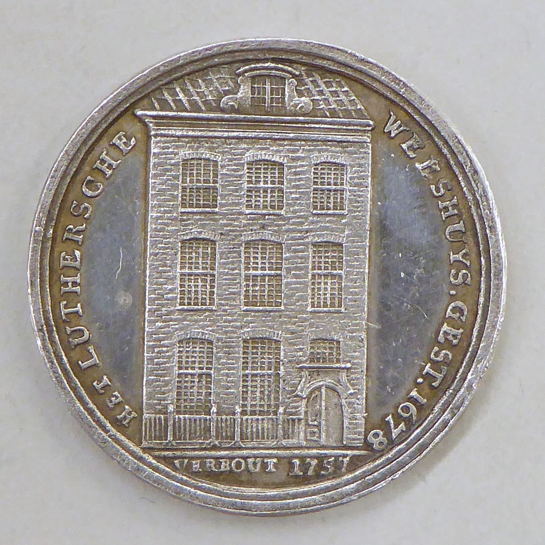 Penning Luthers weeshuis, "Het Luthersche Weeshuys, Gesticht 1678-verbout 1757", kz. engel, zwaan