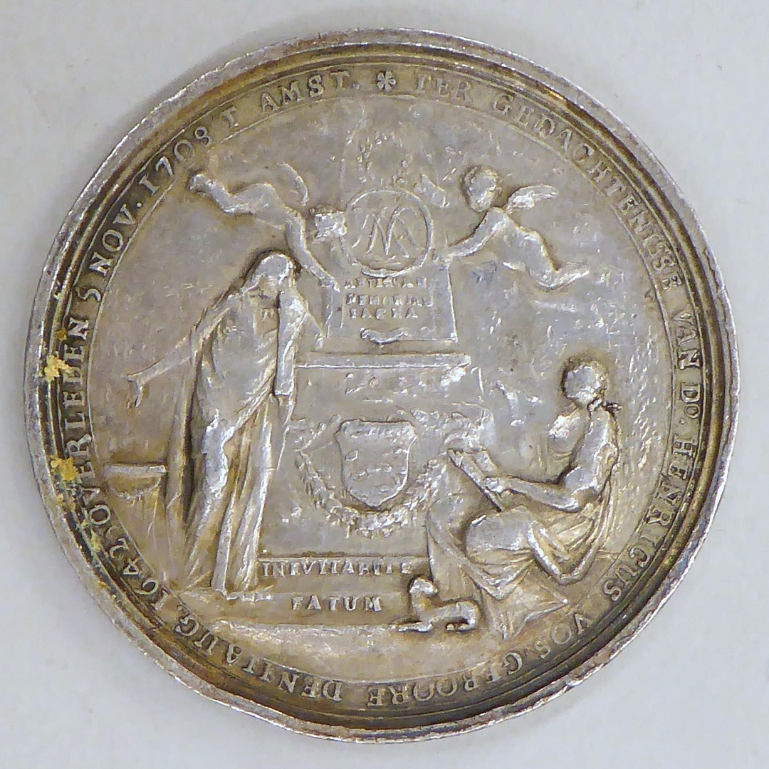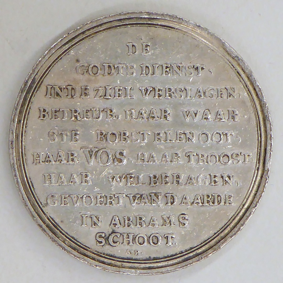 Penning, grafmonument, met "Ter gedachtenisse van Ds. Henricus Vos...", kz. met "...in Abrams schoot"