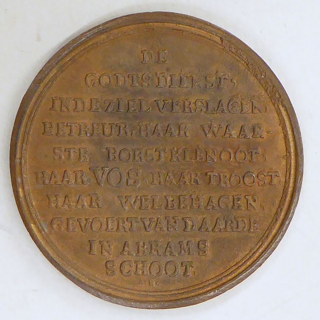 Penning, grafmonument, met "Ter gedachtenisse van Ds. Henricus Vos...", kz. met "...in Abrams schoot"