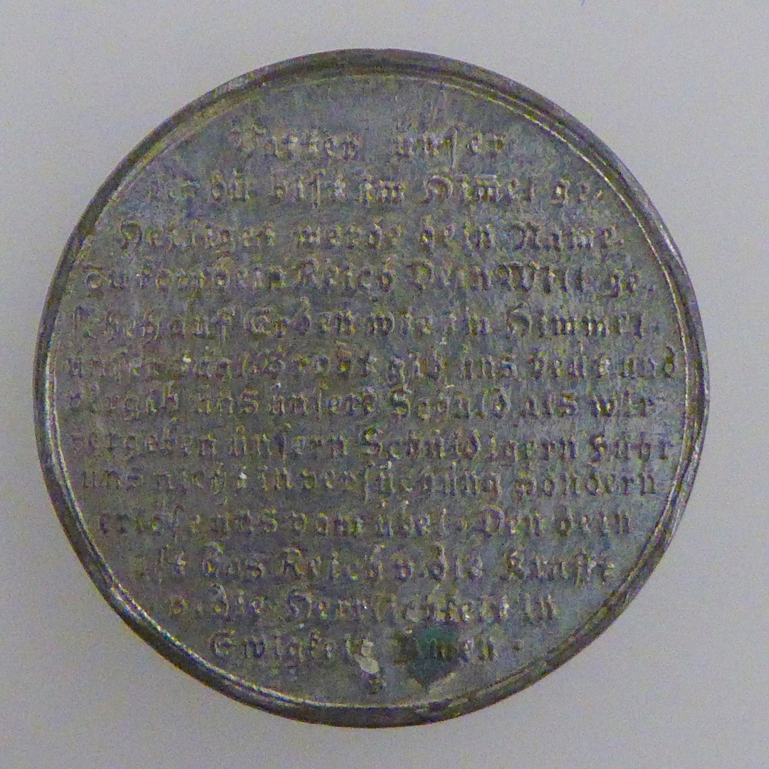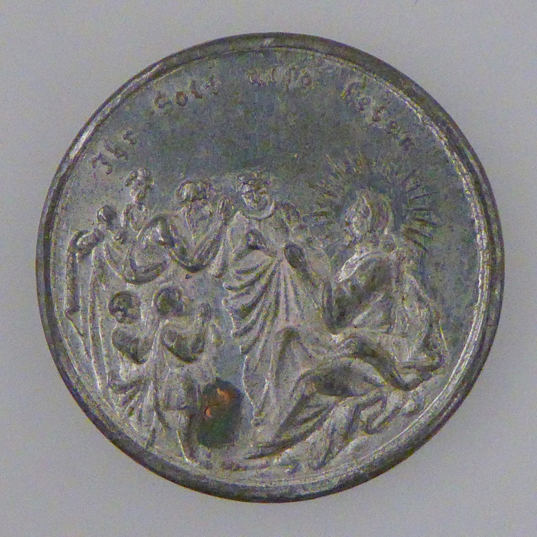 Penning (een van zeven) met Christus leert de mensen bidden, kz. "Vatter unser ..."