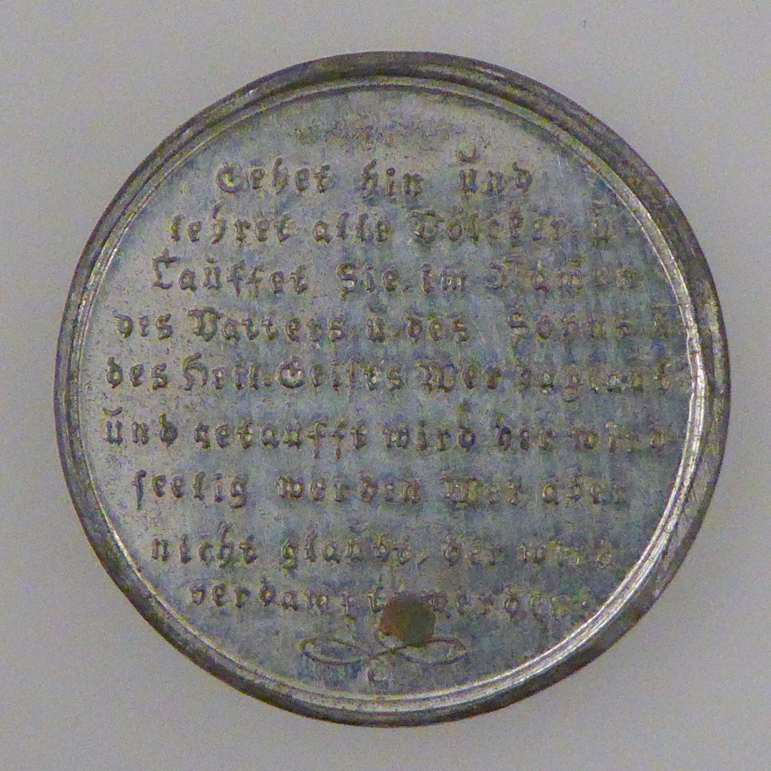 Penning (een van zeven) met doop, kz. "Gehet hin und ..."