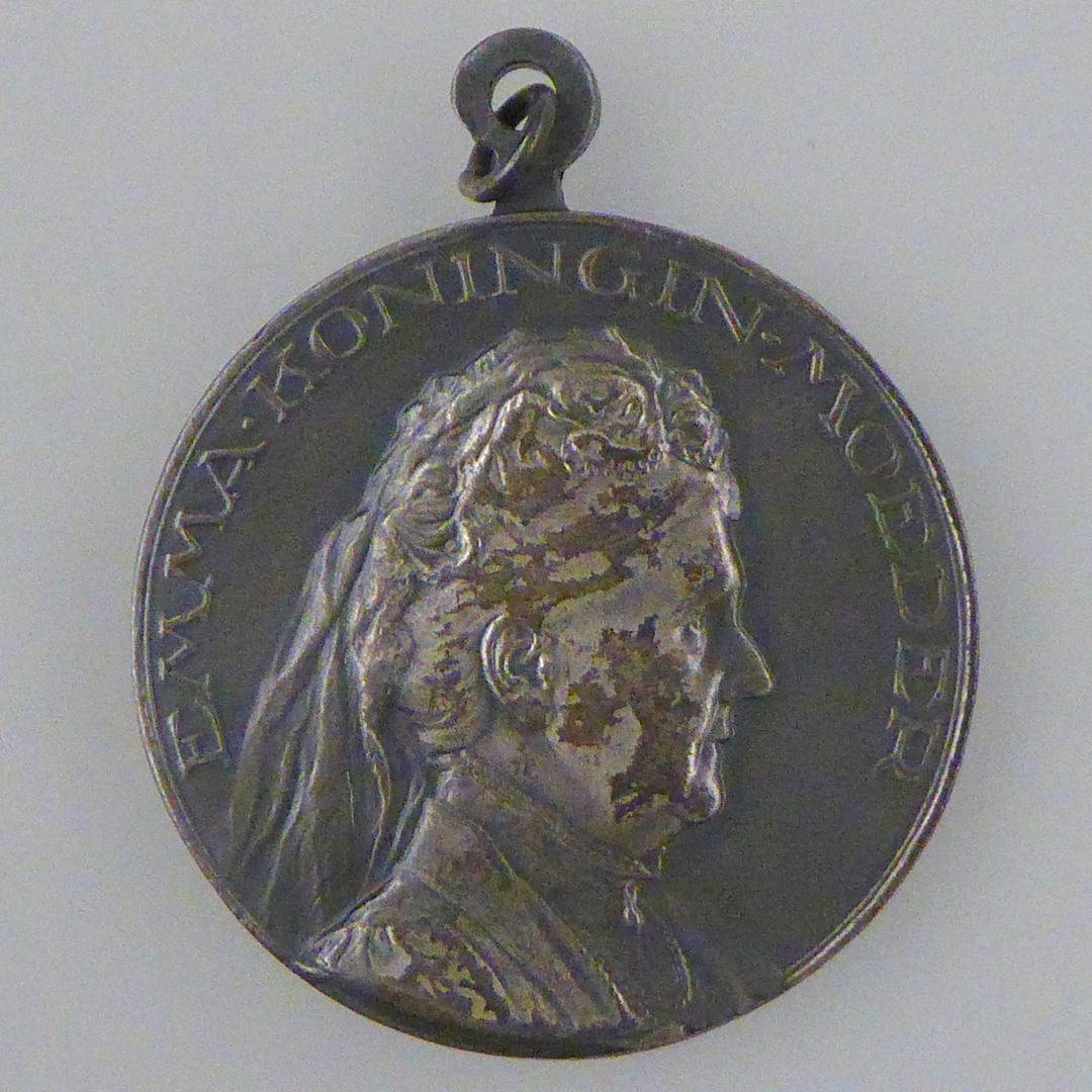 Penning met portret van koningin Emma en haar naam, kz. Nederlands wapen en "1879-1929"