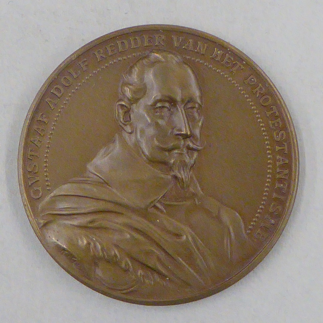 Penning met "Gustaaf Adolf redder van het protestantisme", kz. met "Drie honderd jaren ..."