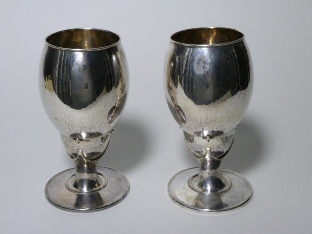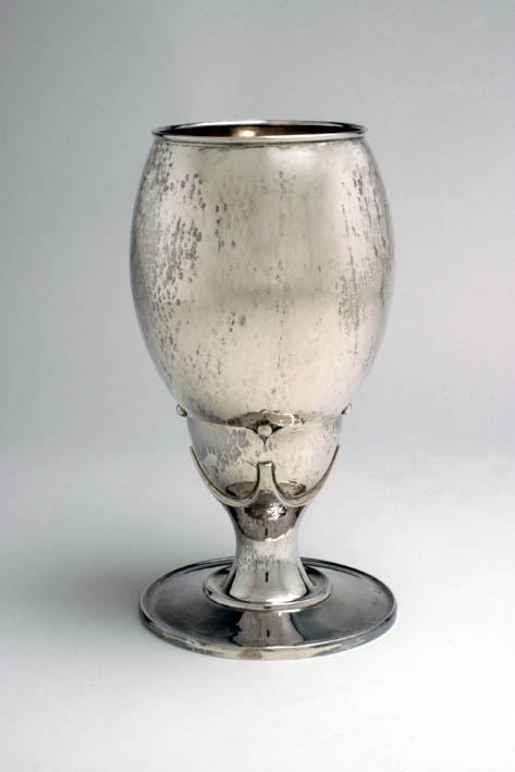 Avondmaalsbeker in Jugendstil, met uit een stuk gedreven eiervormige cuppa