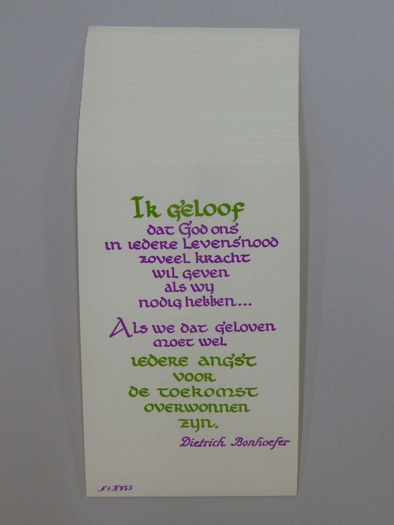 Kaart (20 stuks) met "Ik geloof dat God ons in iedere levensnood ..."