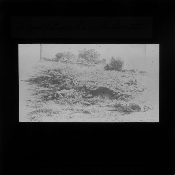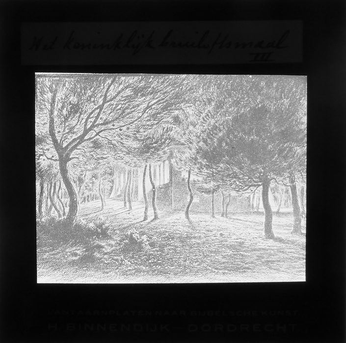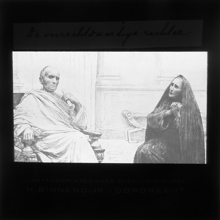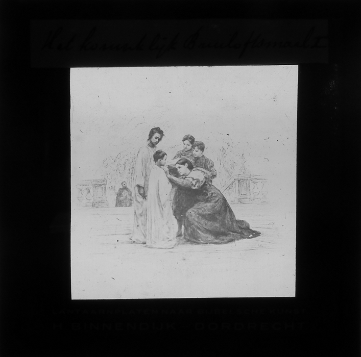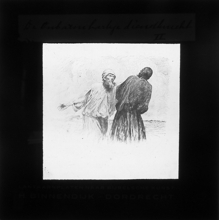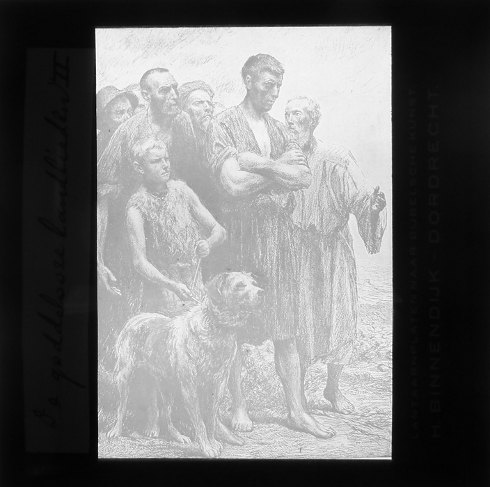 18 lantaarnplaatjes uit serie "Lantaarnplaten naar Bijbelsche Kunst"