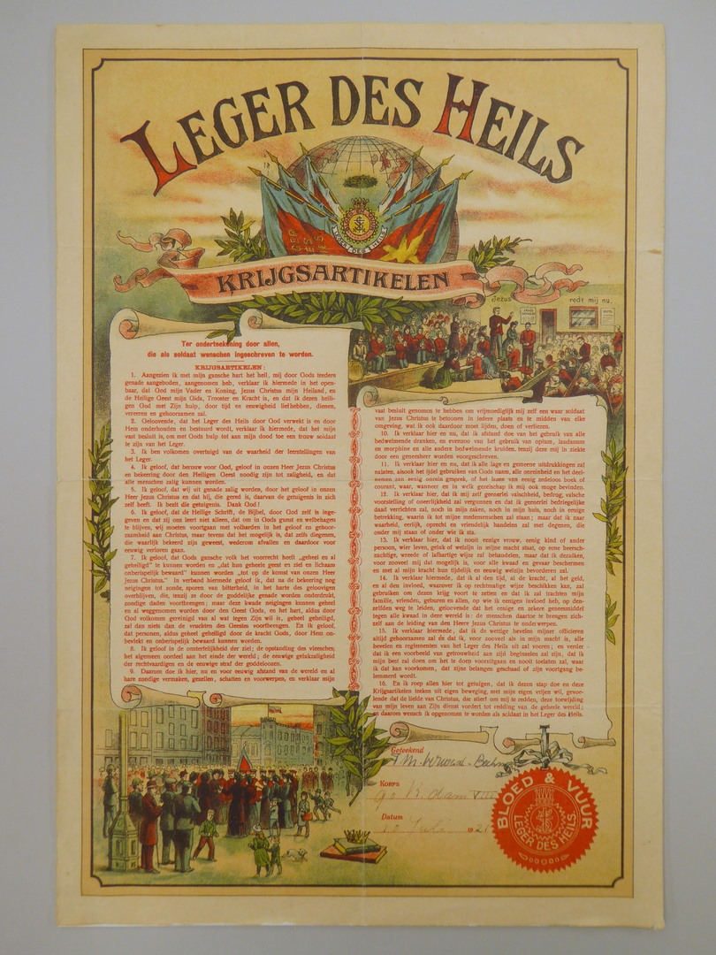 Leger des Heils, krijgsartikelen, uitgereikt bij intrede