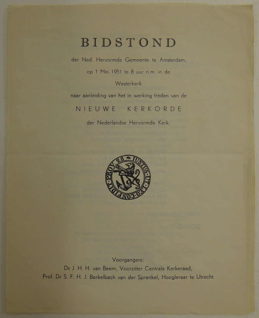 Liturgie van de bidstond der Ned. Hervormde Gemeente te Amsterdam op 1 mei 1951