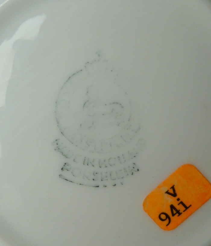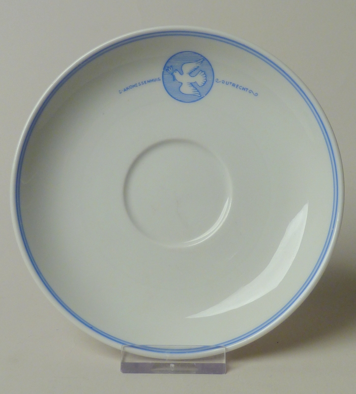 Schotel behorende bij SPKK v94h, met vredesduifembleem en met "Diakonessenhuis Utrecht"