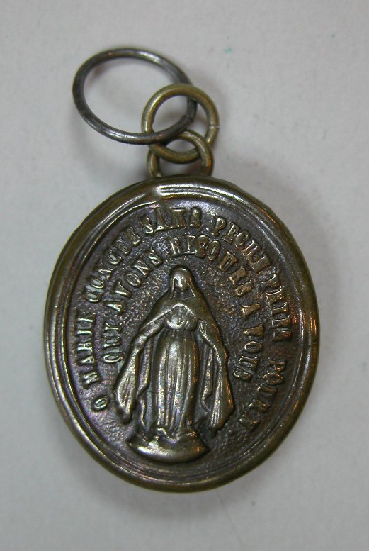 Reliekmedaillon met reliek van H. Angela Merici, maagd, op de achterkant beeltenis van Onbevlekte Ontvangenis van Maria