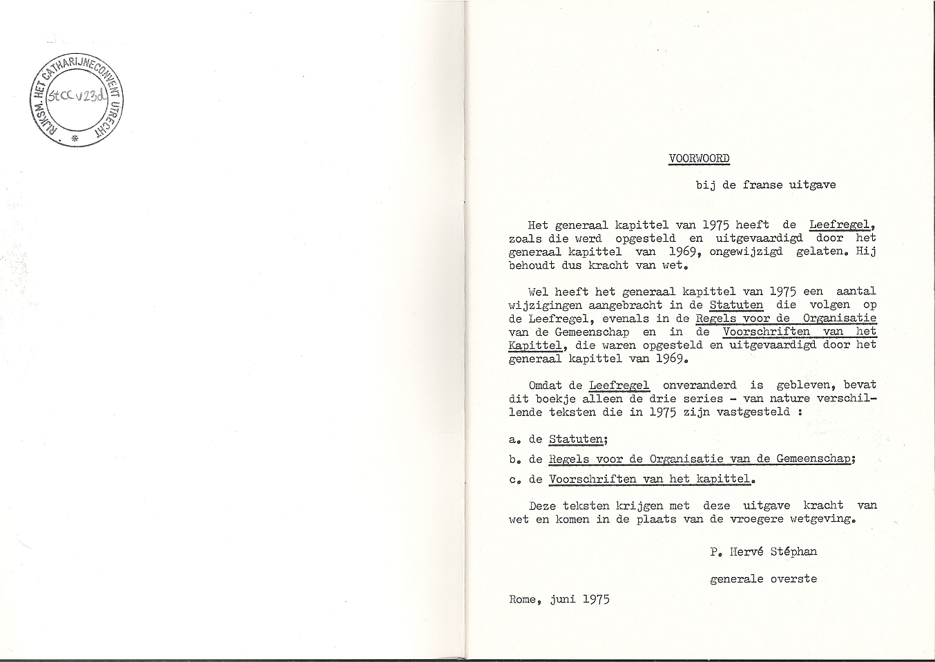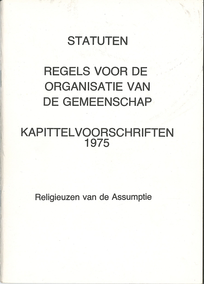 Statuten, regels voor de organisatie van de gemeenschap, kapittelvoorschriften 1975, Religieuzen van de Assumptie