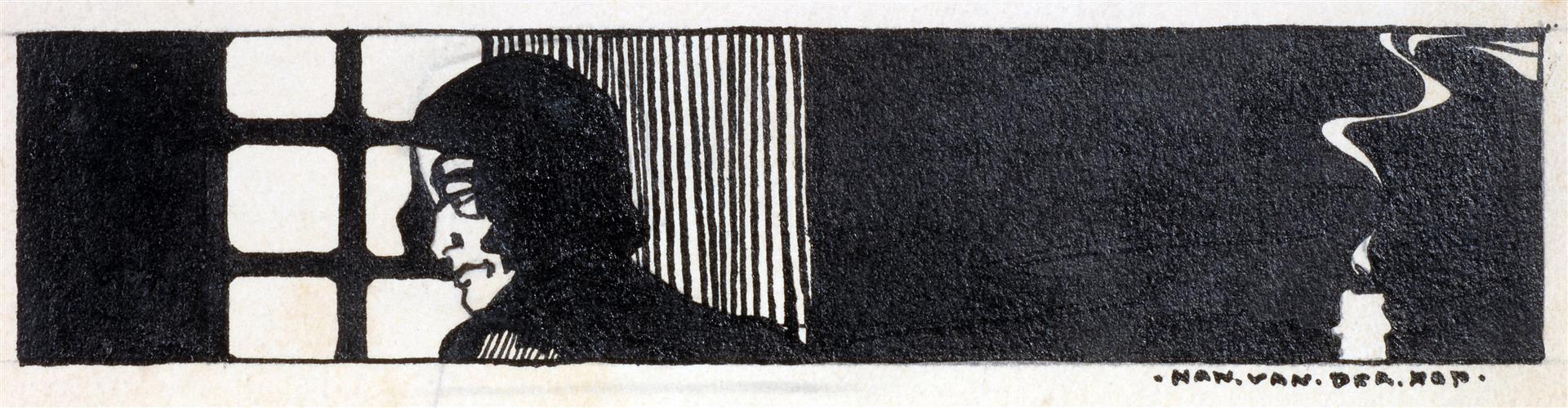 Een man bij een raam en een rokende kaars in sterk zwart wit.