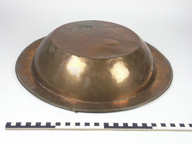 3 grote koperen schalen; rond met uitstaande randen