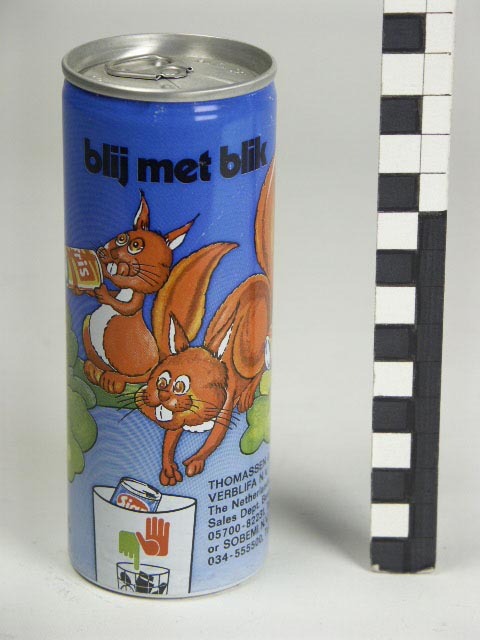 Drinkbus blauw met afbeelding van eekhoorns "blij met blik"