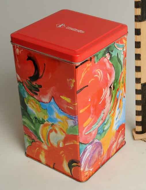 Vierkante trommel met veelkleurige abstracte afbeelding voor Engelse Toast van Bolletje