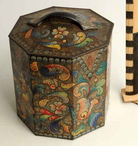 Achthoekige trommel versierd met fantasiebloemen