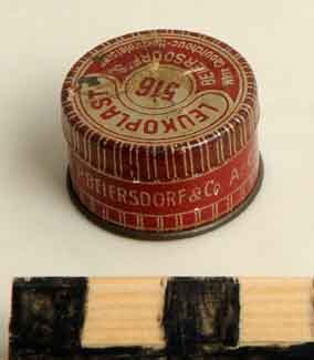 Ronde doos voor "Leukoplast" 1 m. x 1 cm. hechtpleister van Beiersdorf & Co, Hamburg