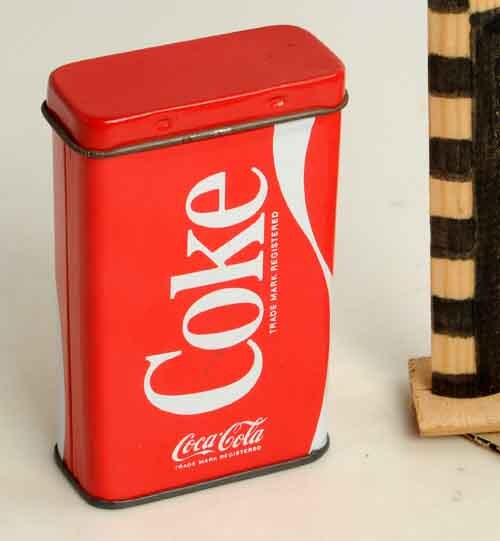 Rechthoekig sigarettenblikje met opschrift Coke in rood en wit, Coca Cola
