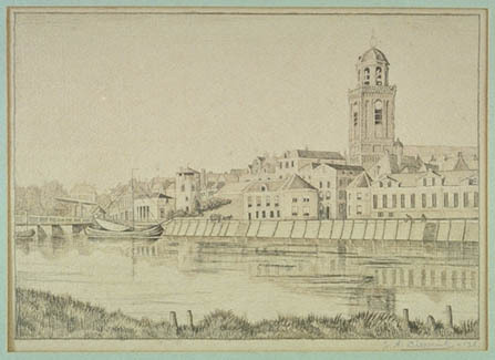 Gezicht op Deventer vanaf de overkant van de IJssel