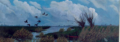 Waterlandschap met wilgen en eenden