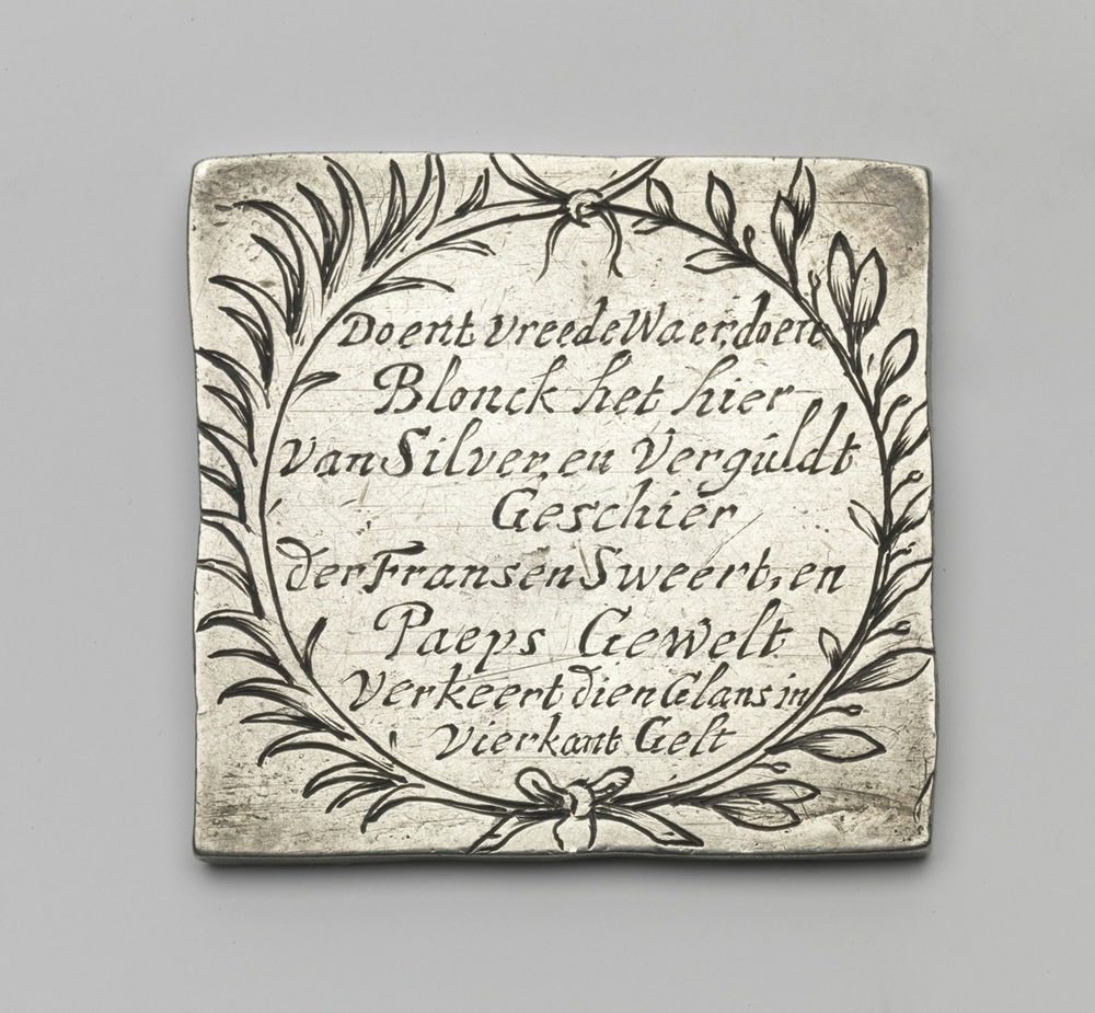 Daalder; muntheer: Deventer; muntplaats: Deventer noodmunt keerzijde met opschrift....paeps gewelt....