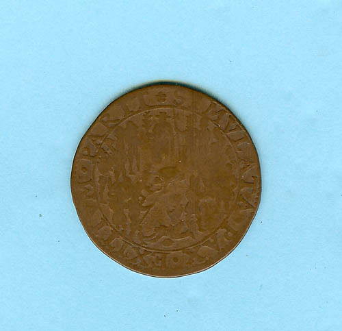 Rekenpenning met op de voorzijde een kardinaal met soldaten en volk, op de keerzijde een wachttoren met strijder