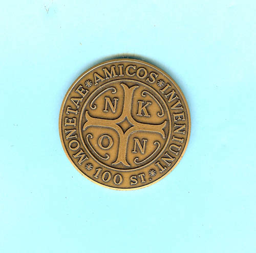 Penning N K O N, Numismatische Kring Oost Nederland, MONETAE AMICOS INVENTUM 100 ST, keerzijde blanco