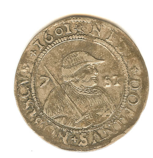 Zeven stuiver of kwart florijn met op de voorzijde heer met zwaard, omschrift NISI DOMINVS NOBISCVM , keerzijde gekroond wapenschild van Friesland met omschrift MONET NOVA ARGEN ORDINVM FRISIAE
