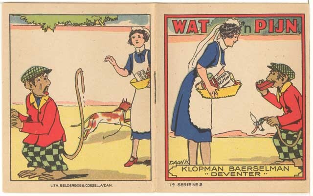 Dierenverhaal; reclame-uitgave; rijmvertelling; prentenboek. Reeks: titel onbekend ; serie 1, no. 2. Illustraties: litho's in kleur en in zwart-wit. Reclame voor koek van Klopman Baerselman te Deventer.