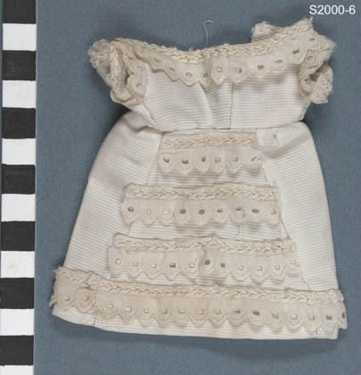 Jurk van witte katoen met horizontale ribbels met broderie garnering