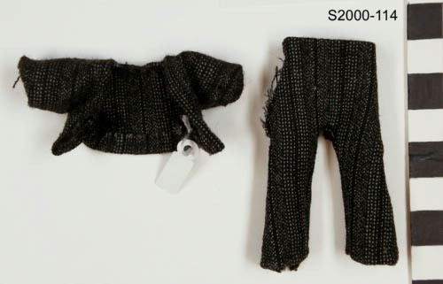 Lange broek en jasje van grijs en zwart gestreepte wollen stof