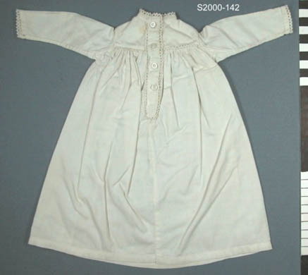 Wit katoenen nachthemd met lange mouw. Achterpas en 2x voorpas. Gerimpeld